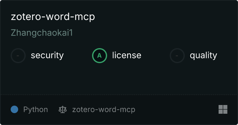 curl -X GET 'https://glama.ai/api/mcp/v1/servers/Zhangchaokai1/zotero-word-mcp'