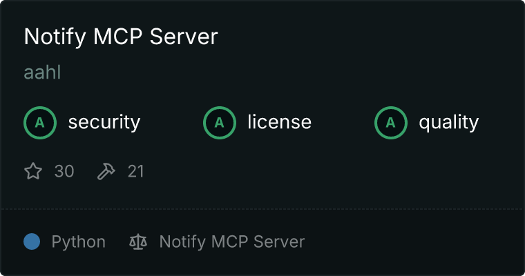 curl -X GET 'https://glama.ai/api/mcp/v1/servers/aahl/mcp-notify'