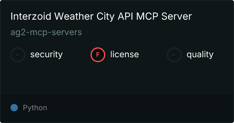 curl -X GET 'https://glama.ai/api/mcp/v1/servers/ag2-mcp-servers/interzoid-get-weather-city-api'