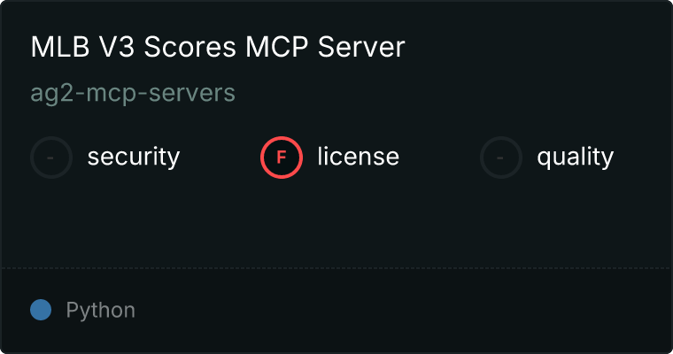 curl -X GET 'https://glama.ai/api/mcp/v1/servers/ag2-mcp-servers/mlb-v3-scores'