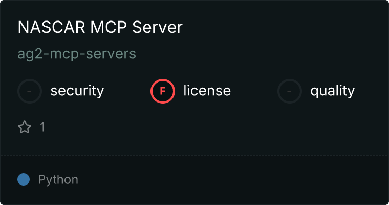 curl -X GET 'https://glama.ai/api/mcp/v1/servers/ag2-mcp-servers/nascar-v2'