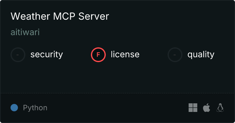 curl -X GET 'https://glama.ai/api/mcp/v1/servers/aitiwari/weather'
