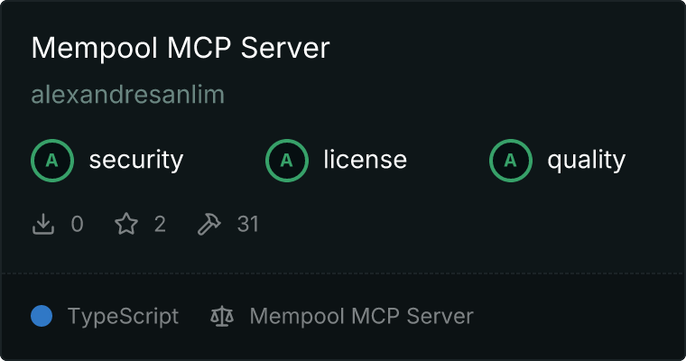 curl -X GET 'https://glama.ai/api/mcp/v1/servers/alexandresanlim/mempool-mcp-server'