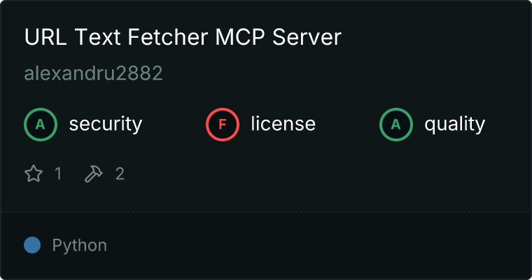 curl -X GET 'https://glama.ai/api/mcp/v1/servers/alexandru2882/url-text-fetcher-mcp'