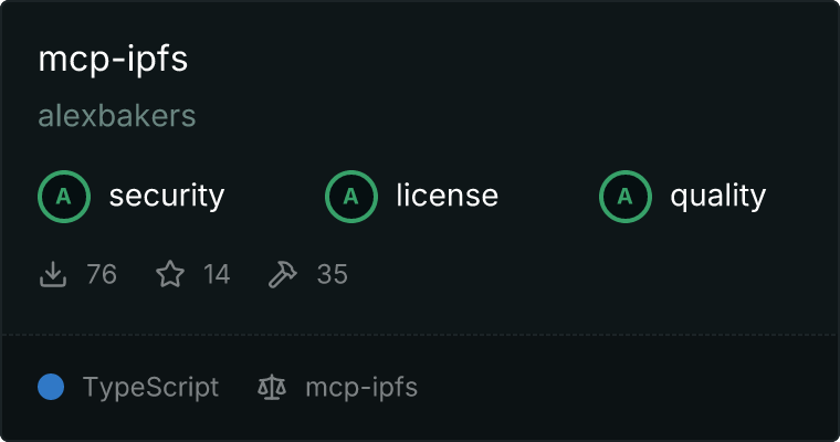 curl -X GET 'https://glama.ai/api/mcp/v1/servers/alexbakers/mcp-ipfs'