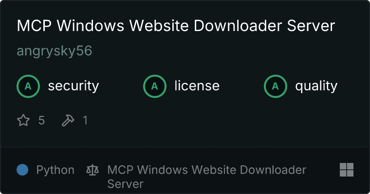 curl -X GET 'https://glama.ai/api/mcp/v1/servers/angrysky56/mcp-windows-website-downloader'