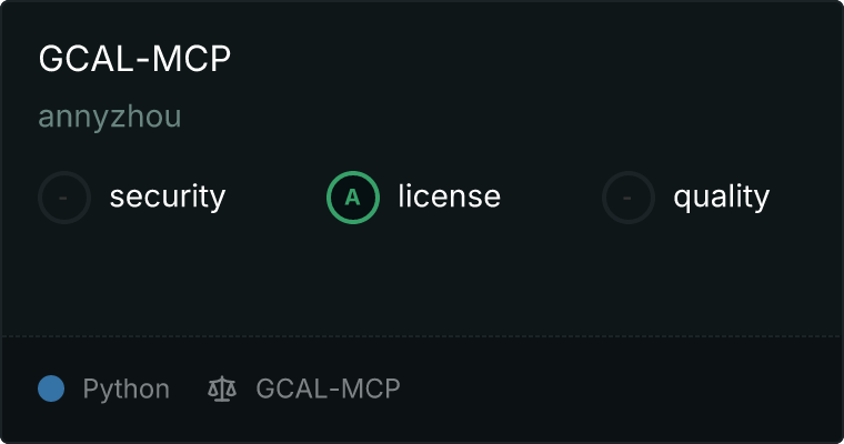 curl -X GET 'https://glama.ai/api/mcp/v1/servers/annyzhou/gcal-mcp'
