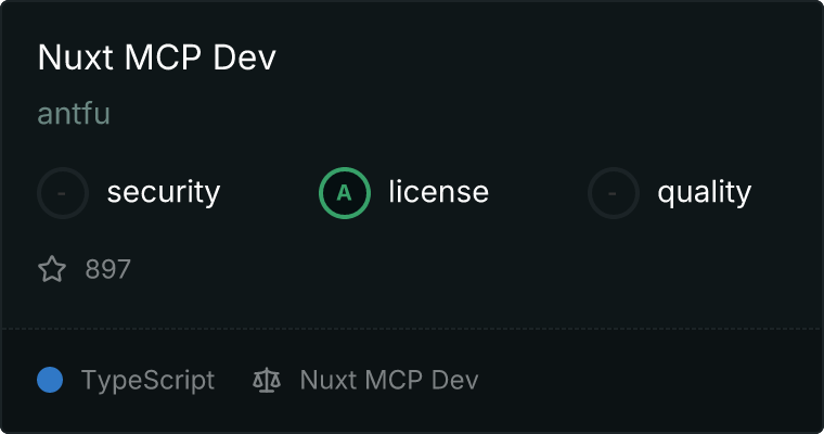 curl -X GET 'https://glama.ai/api/mcp/v1/servers/antfu/nuxt-mcp-dev'
