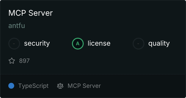 curl -X GET 'https://glama.ai/api/mcp/v1/servers/antfu/nuxt-mcp'