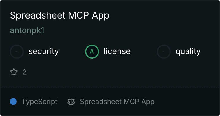 curl -X GET 'https://glama.ai/api/mcp/v1/servers/antonpk1/spreadsheet-mcp-app'