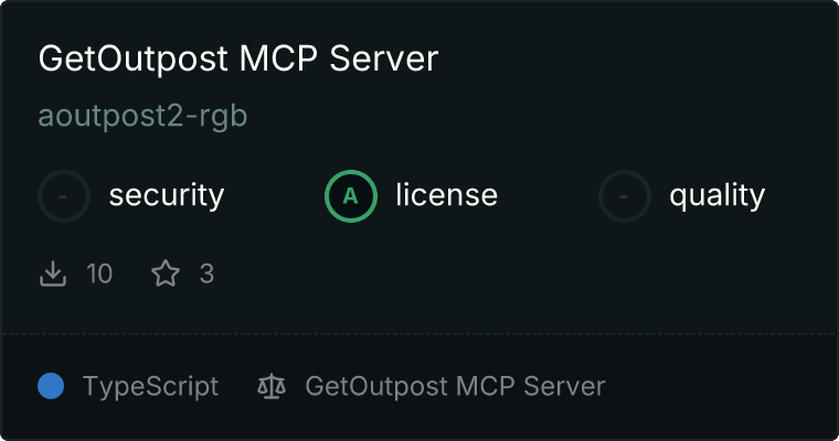curl -X GET 'https://glama.ai/api/mcp/v1/servers/aoutpost2-rgb/getoutpost-mcp-server'