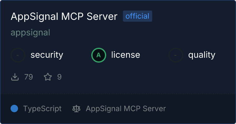 curl -X GET 'https://glama.ai/api/mcp/v1/servers/appsignal/appsignal-mcp'