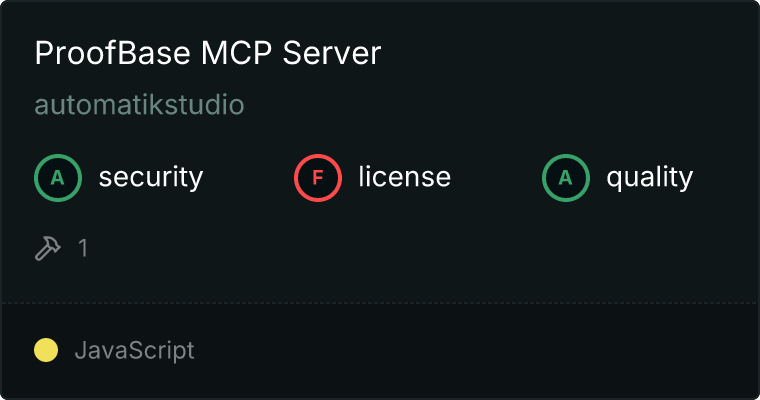 curl -X GET 'https://glama.ai/api/mcp/v1/servers/automatikstudio/proofbase-mcp'
