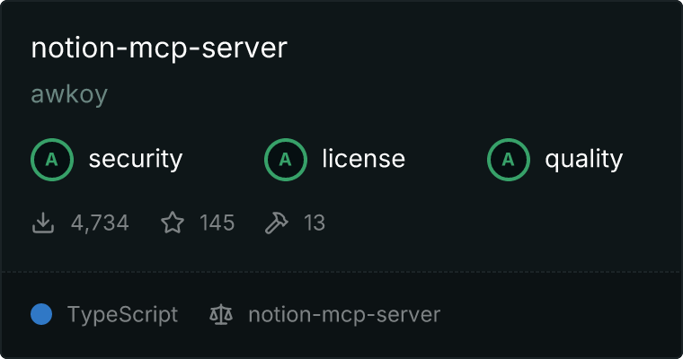 Our directory badge helps users to quickly assess server capabilities, safety, and instructions for installing the server.