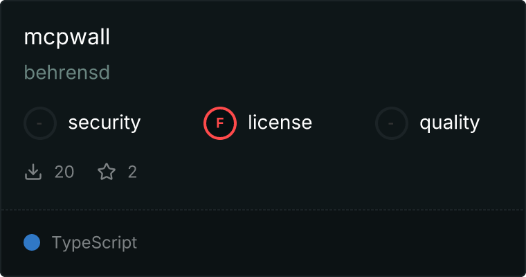curl -X GET 'https://glama.ai/api/mcp/v1/servers/behrensd/mcpwall'