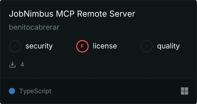 curl -X GET 'https://glama.ai/api/mcp/v1/servers/benitocabrerar/jobnimbus-mcp-remote'