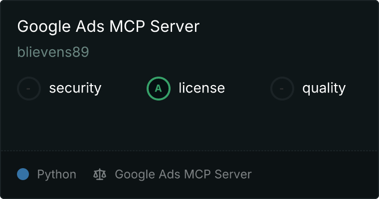 curl -X GET 'https://glama.ai/api/mcp/v1/servers/blievens89/MCPGoogleAds'
