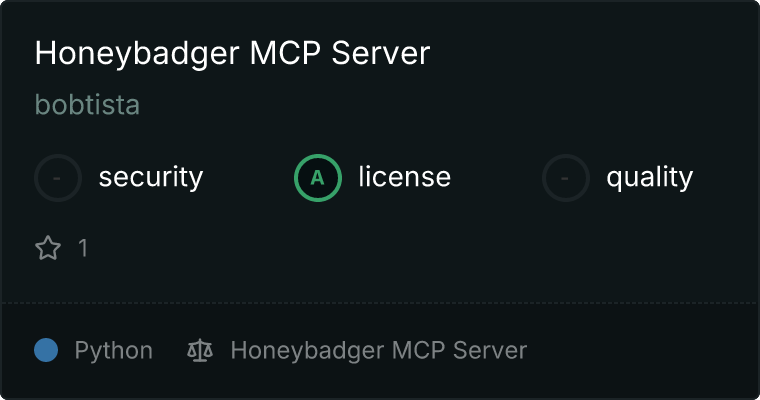curl -X GET 'https://glama.ai/api/mcp/v1/servers/bobtista/honeybadger-mcp'