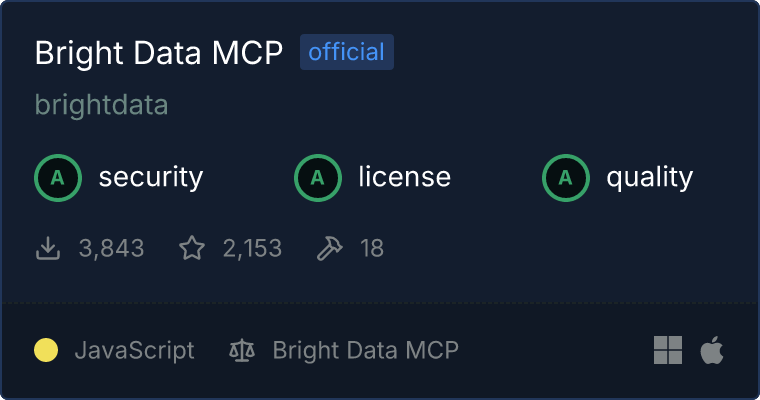 Our directory badge helps users to quickly assess server capabilities, safety, and instructions for installing the server.