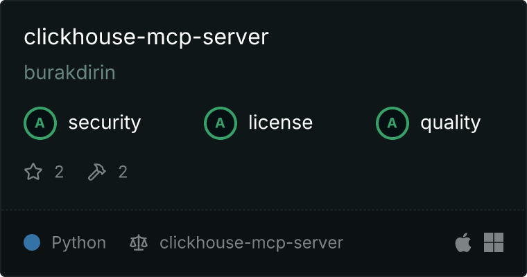 curl -X GET 'https://glama.ai/api/mcp/v1/servers/burakdirin/clickhouse-mcp-server'