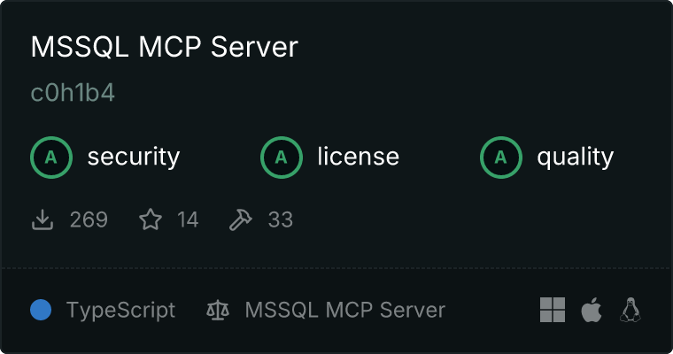 curl -X GET 'https://glama.ai/api/mcp/v1/servers/c0h1b4/mssql-mcp-server'