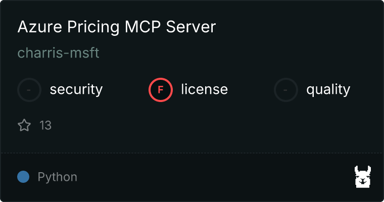 curl -X GET 'https://glama.ai/api/mcp/v1/servers/charris-msft/azure-pricing-mcp'
