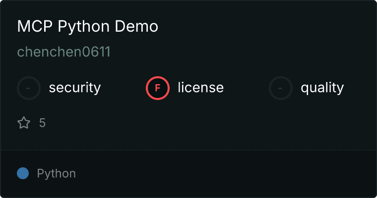 curl -X GET 'https://glama.ai/api/mcp/v1/servers/chenchen0611/mcp-python-demo'