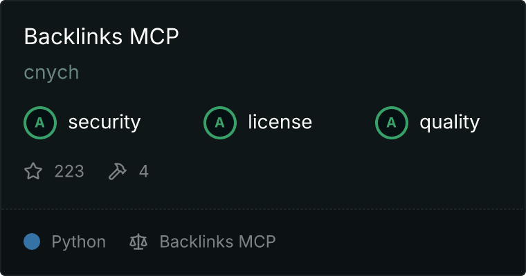 curl -X GET 'https://glama.ai/api/mcp/v1/servers/cnych/backlinks-mcp'