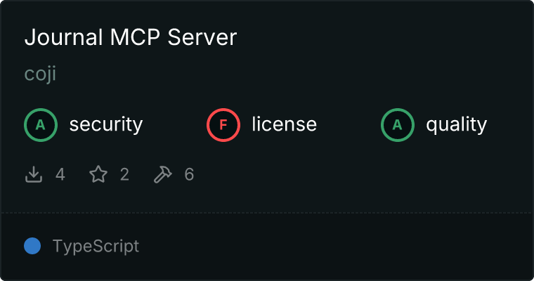 curl -X GET 'https://glama.ai/api/mcp/v1/servers/coji/journal-mcp'