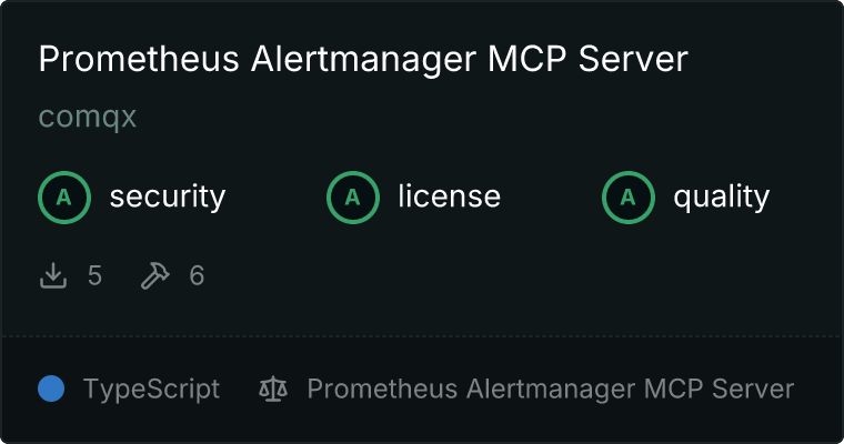 curl -X GET 'https://glama.ai/api/mcp/v1/servers/comqx/alertmanager-mcp'
