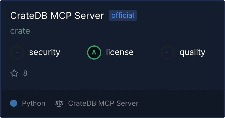 curl -X GET 'https://glama.ai/api/mcp/v1/servers/crate/cratedb-mcp'