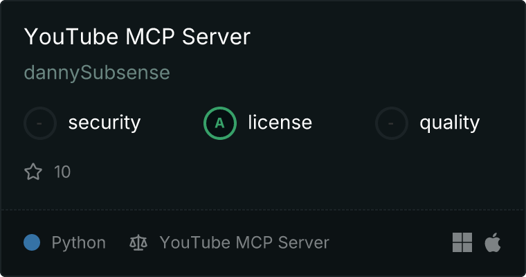curl -X GET 'https://glama.ai/api/mcp/v1/servers/dannySubsense/youtube-mcp-server'