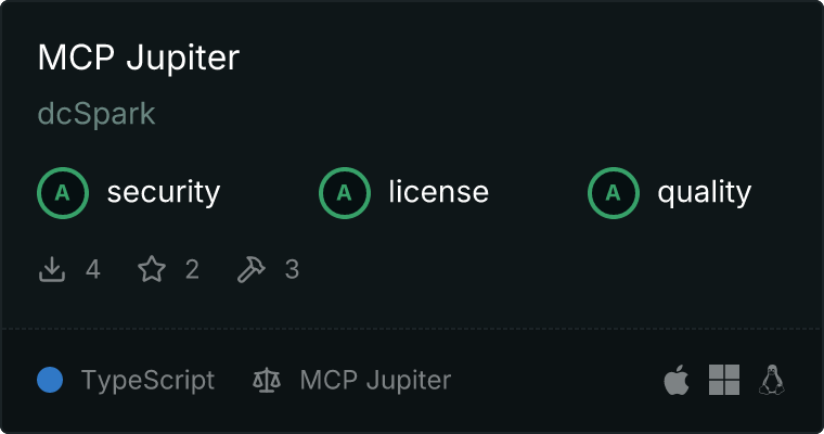 curl -X GET 'https://glama.ai/api/mcp/v1/servers/dcSpark/mcp-server-jupiter'