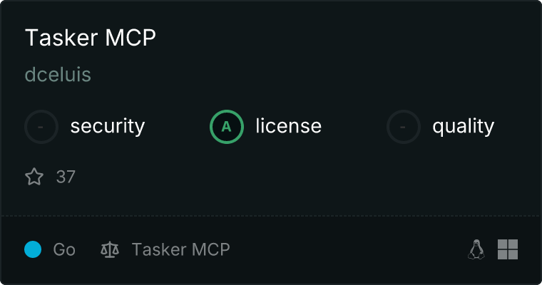 curl -X GET 'https://glama.ai/api/mcp/v1/servers/dceluis/tasker-mcp'