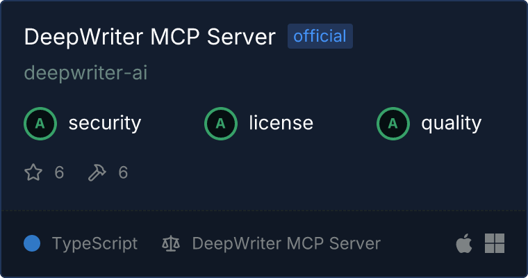 curl -X GET 'https://glama.ai/api/mcp/v1/servers/deepwriter-ai/Deepwriter-MCP'