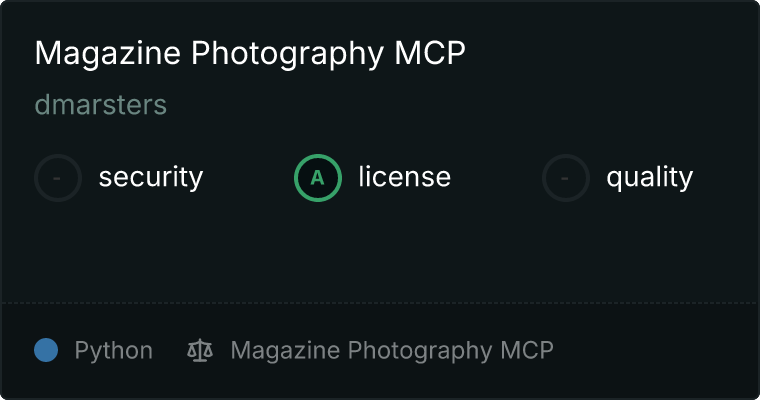 curl -X GET 'https://glama.ai/api/mcp/v1/servers/dmarsters/magazine-photography-mcp'