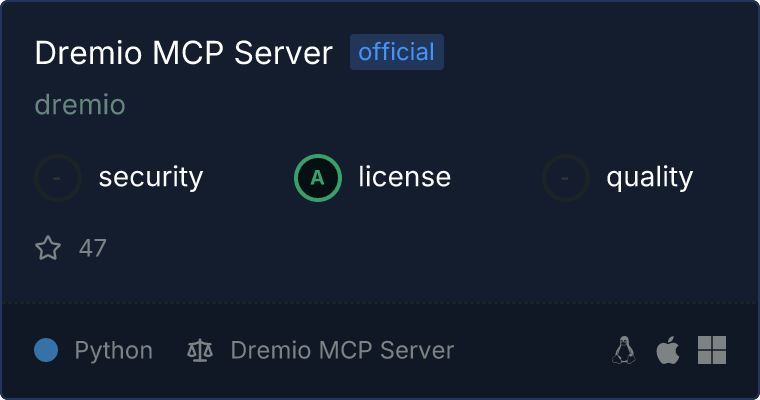 curl -X GET 'https://glama.ai/api/mcp/v1/servers/dremio/dremio-mcp'
