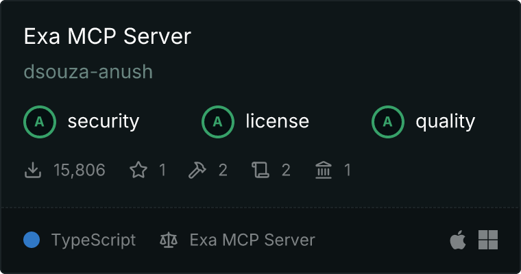 Our directory badge helps users to quickly assess server capabilities, safety, and instructions for installing the server.