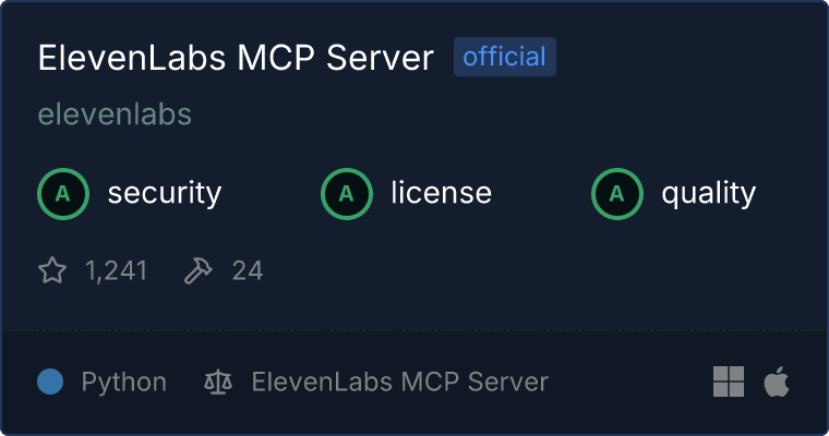 Our directory badge helps users to quickly assess server capabilities, safety, and instructions for installing the server.