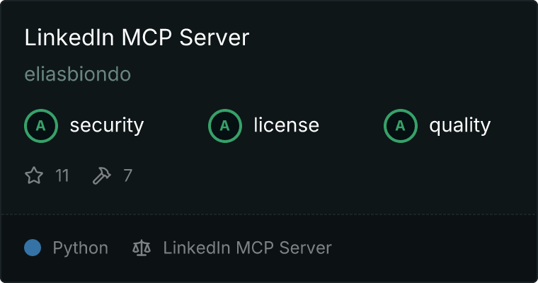 curl -X GET 'https://glama.ai/api/mcp/v1/servers/eliasbiondo/linkedin-mcp-server'