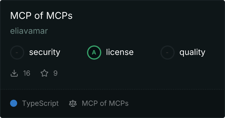 curl -X GET 'https://glama.ai/api/mcp/v1/servers/eliavamar/mcp-of-mcps'