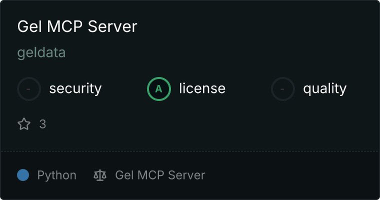 curl -X GET 'https://glama.ai/api/mcp/v1/servers/geldata/gel-mcp'