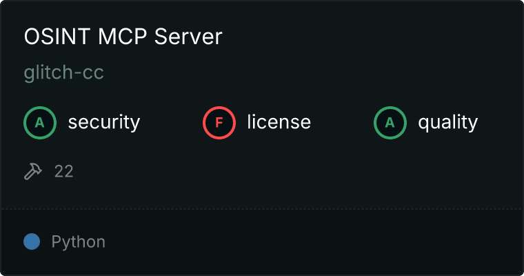 curl -X GET 'https://glama.ai/api/mcp/v1/servers/glitch-cc/osint-mcp-unified'