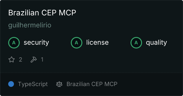 curl -X GET 'https://glama.ai/api/mcp/v1/servers/guilhermelirio/brazilian-cep-mcp'