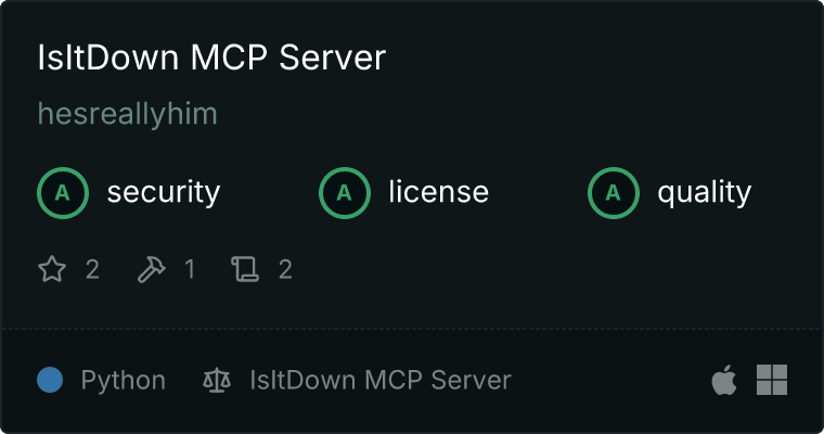 curl -X GET 'https://glama.ai/api/mcp/v1/servers/hesreallyhim/mcp-server-isitdown'
