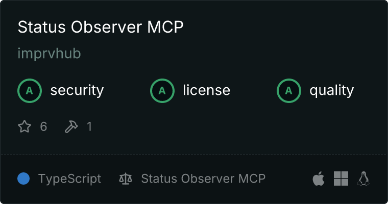 curl -X GET 'https://glama.ai/api/mcp/v1/servers/imprvhub/mcp-status-observer'