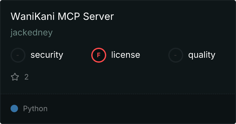 curl -X GET 'https://glama.ai/api/mcp/v1/servers/jackedney/wanikani-mcp'