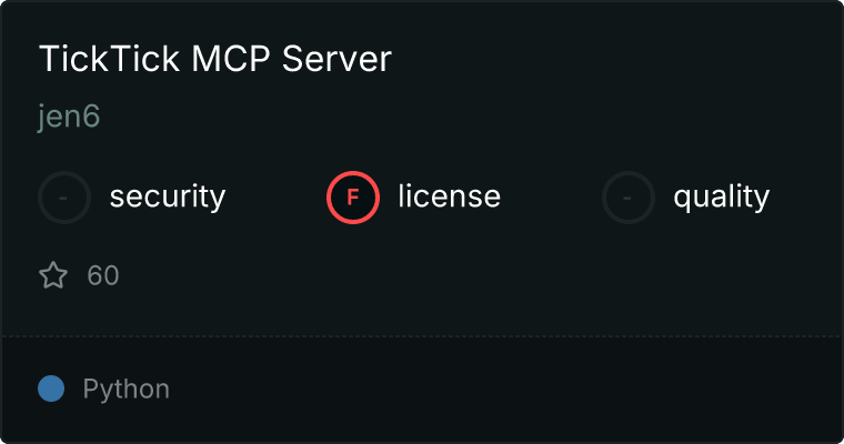 curl -X GET 'https://glama.ai/api/mcp/v1/servers/jen6/ticktick-mcp'