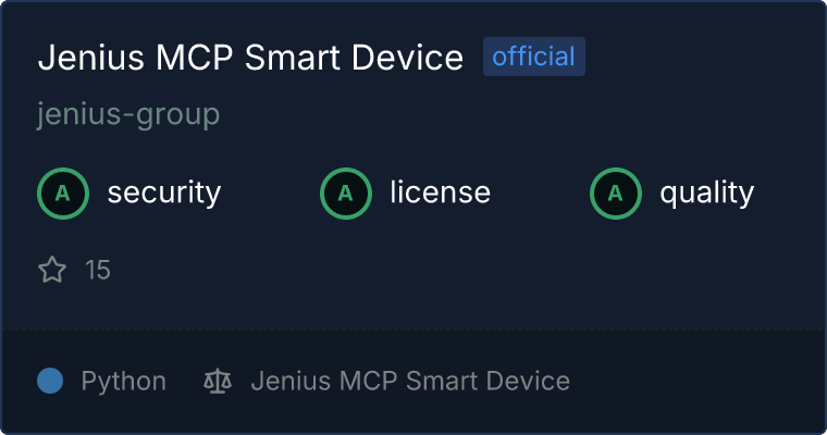 curl -X GET 'https://glama.ai/api/mcp/v1/servers/jenius-group/jenius-mcp-smart-device'