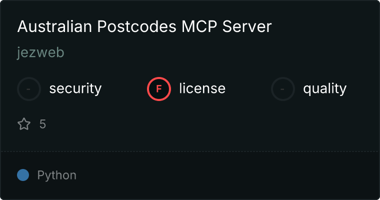 curl -X GET 'https://glama.ai/api/mcp/v1/servers/jezweb/australian-postcodes-mcp'